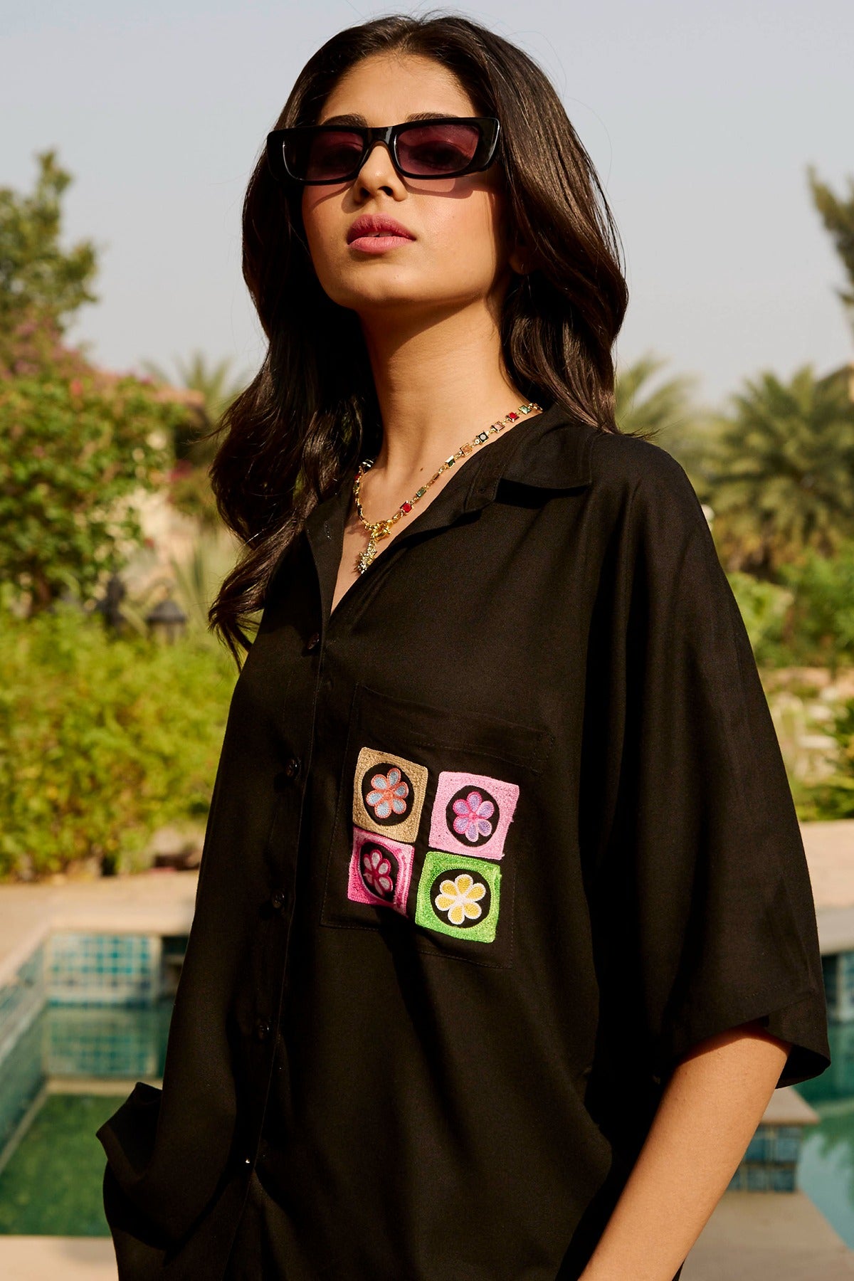 For the fashionista who wants to make a statement, this Chan Rayon embroidered Co-ord Set is a versatile addition to your wardrobe that you'll reach for again and again. The elegant black color provides the perfect backdrop for the ornate embroidered accents. Look and feel your best in this beautiful coord that takes any outfit from drab to fab.
